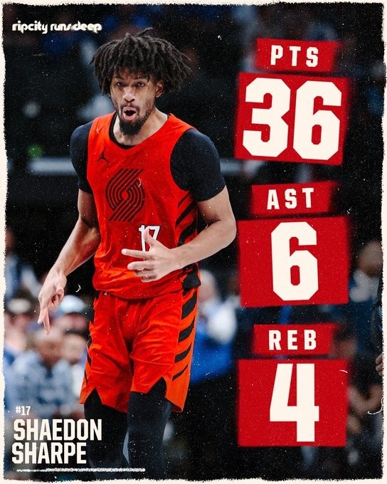 2025-11-17 16:11:2132中12砍下36+6!开拓者发布夏普数据海报:又一个表现出色的夜晚